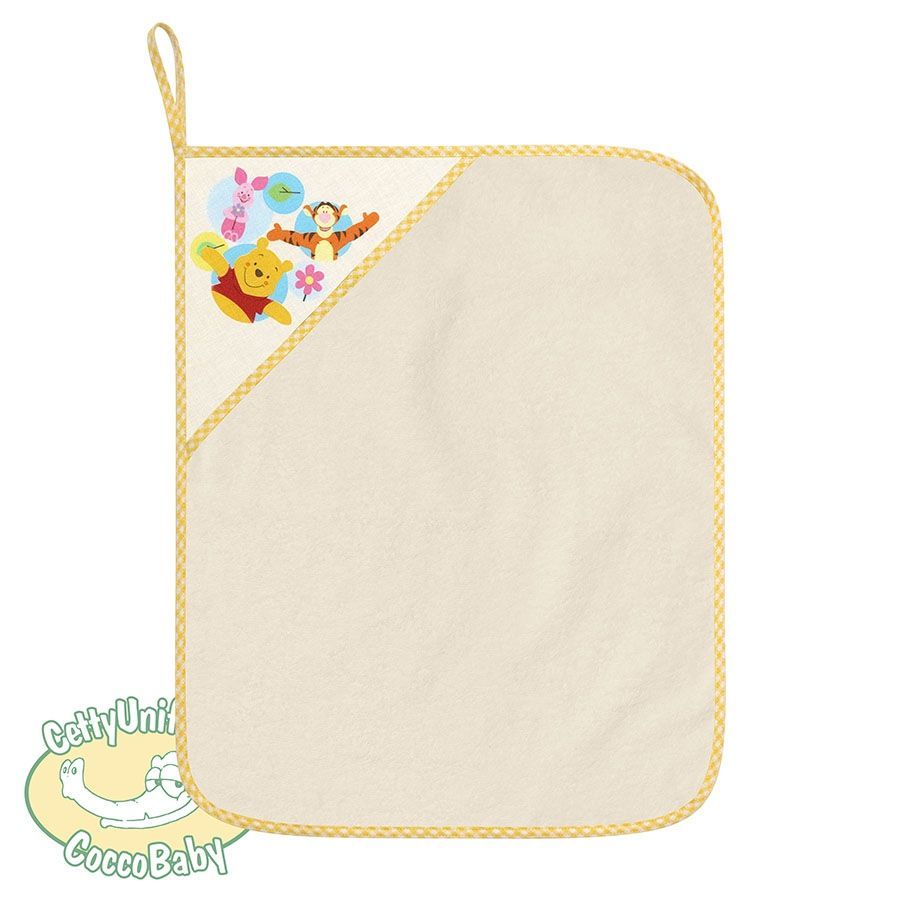 Asciugamano grande asilo "Tanti Winnie the pooh", con asola di 8 cm per appenderlo (43x54 cm). Colore di spugna Panna con bordo a quadretti gialli. Le immagini sono scelte a seconda della nostra disponibilità.